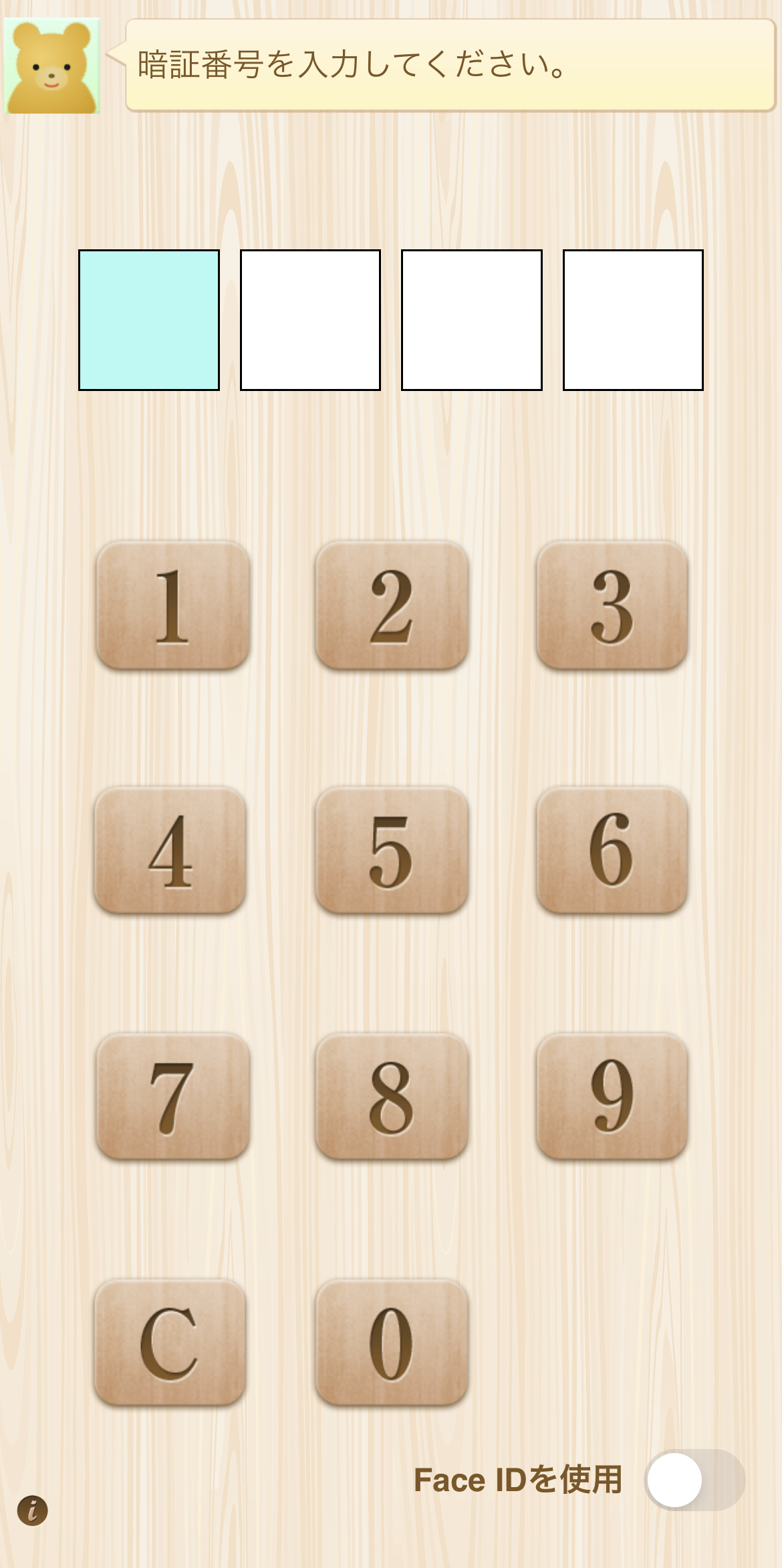 暗証番号を設定すると、アプリ起動時に暗証番号入力を求められます。