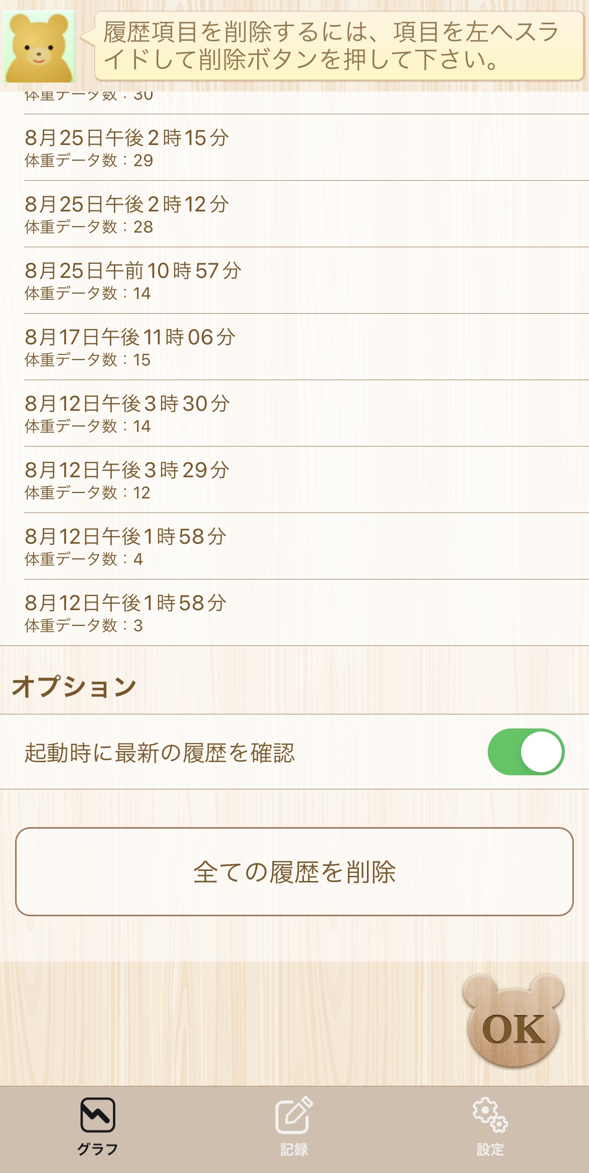 データ履歴は削除してしまうと元に戻すことはできませんのでご注意下さい。