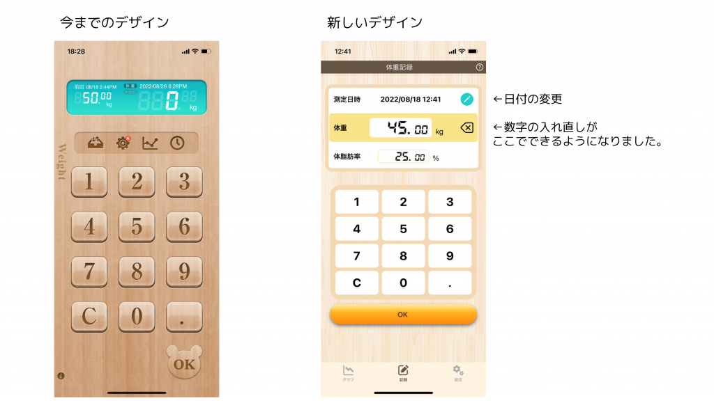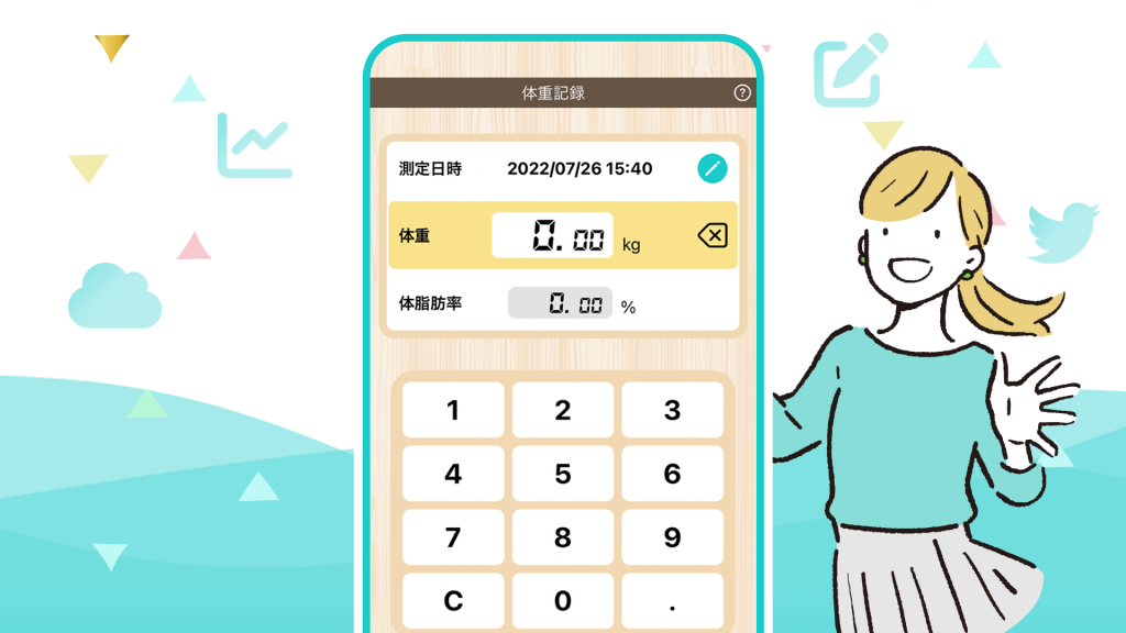 少しでも皆様の体重記録がしやすくなるよう、ボタンのサイズ、表示箇所、押しやすさにもこだわりました。
