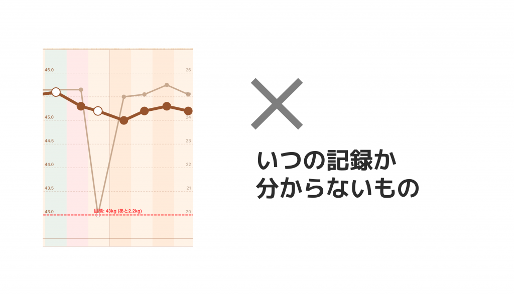 ① 記録対象期間でシンプルダイエットに7日間連続で体重を記録する。