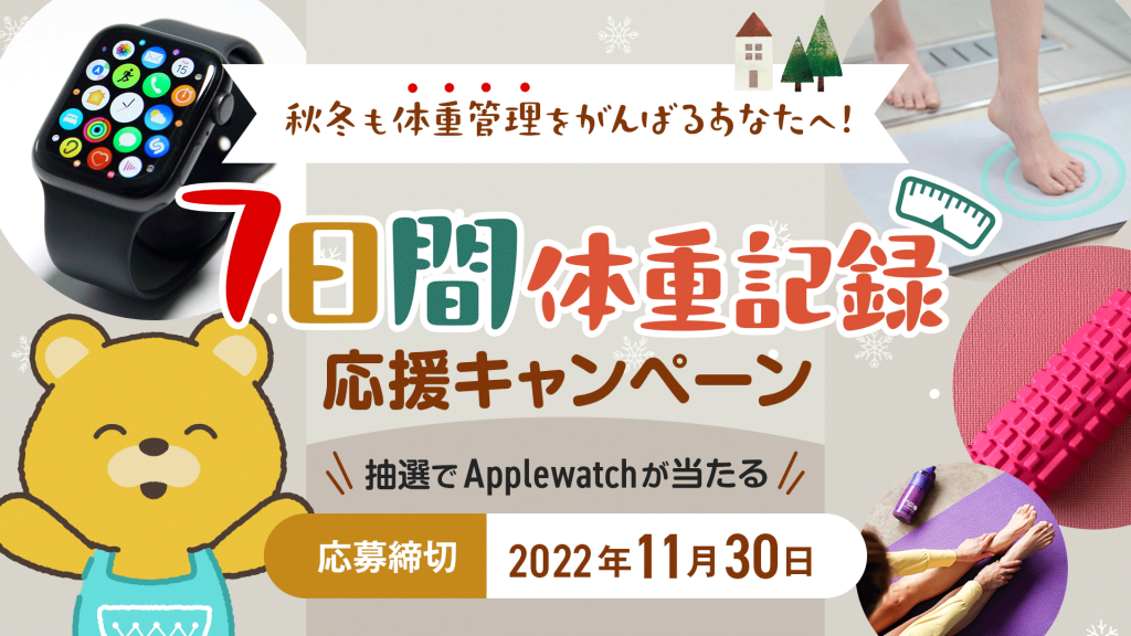 キャンペーンの対象期間中に7日間連続で体重を記録した方に、ダイエットや健康管理に役立つグッズをプレゼント!